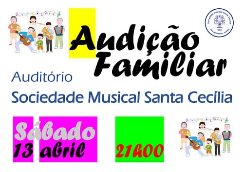 Realizou-se no sábado, dia 13 de abril de 2019, pelas 21h00, no auditório da nossa sede o concerto ‘Audição Familiar’, em que alunos da nossa escola, com laços familiares, interpretaram peças conjuntamente.