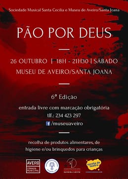 Realizou-se no dia 26 de Outubro de 2019, entre as 18h00 e as 21h30, no Museu de Santa Joana em Aveiro o evento denominado ‘Pão Por Deus’ com a participação conjunta das escolas de Dança, Teatro e Música da S. M. Sta.Cecília. Com entrada livre o evento teve, como habitualmente, elevada participação.