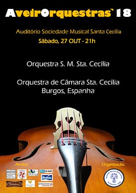 Realizou-se no dia 27 de outubro de 2018, pelas 21h00 no auditório da nossa sede, o concerto AveirOrquestras’18 com a participação da Orquestra da S. M. Sta. Cecília e da Orquestra de Câmara Sta. Cecília – Burgos (Espanha). O concerto finalizou com uma peça interpretada pelas duas orquestras em conjunto.