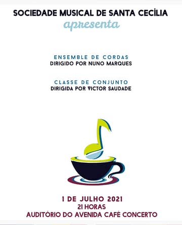 Realizou-se no dia 01 de Julho de 2021, pelas 21h00, no auditório do Avenida Café Concerto um concerto com a participação do Ensemble de Cordas, dirigido por Nuno Marques e a Classe de Conjunto, dirigida por Victor Saudade, ambos, grupos da Sociedade Musical Santa Cecília.