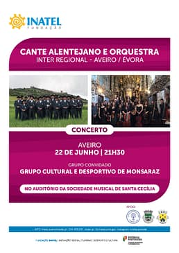 Realizou-se no sábado, dia 22 de junho de 2019, pelas 21h30, no nosso auditório, o concerto “Cante Alentejano e Orquestra” com a participação do convidado Grupo Cultural e Desportivo de Monsaraz e da Orquestra da S. M. Sta. Cecília.