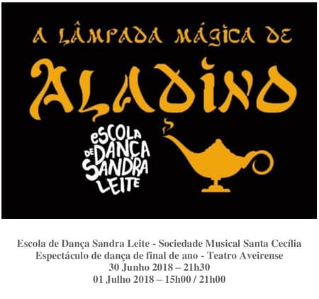 Realizaram-se no Teatro Aveirense, com enorme êxito, nos dias 30 de Junho e 01 de Julho de 2018, três sessões do espectáculo de final de ano lectivo da Escola de Dança Sandra Leite da Sociedade Musical Santa Cecília, intitulados “A Lâmpada Mágica de Aladino”.