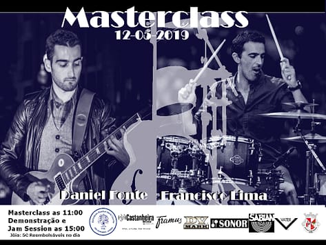 Realizou-se no domingo, dia 12 de maio de 2019, com inicio às 11h00, na nossa sede, a Masterclass de guitarra e bateria orientadas por Daniel Fonte e Francisco Lima, respectivamente.